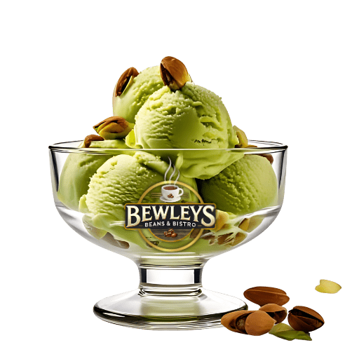 A smooth and nutty pistachio ice cream with a delicate, creamy flavor and a hint of roasted pistachios.