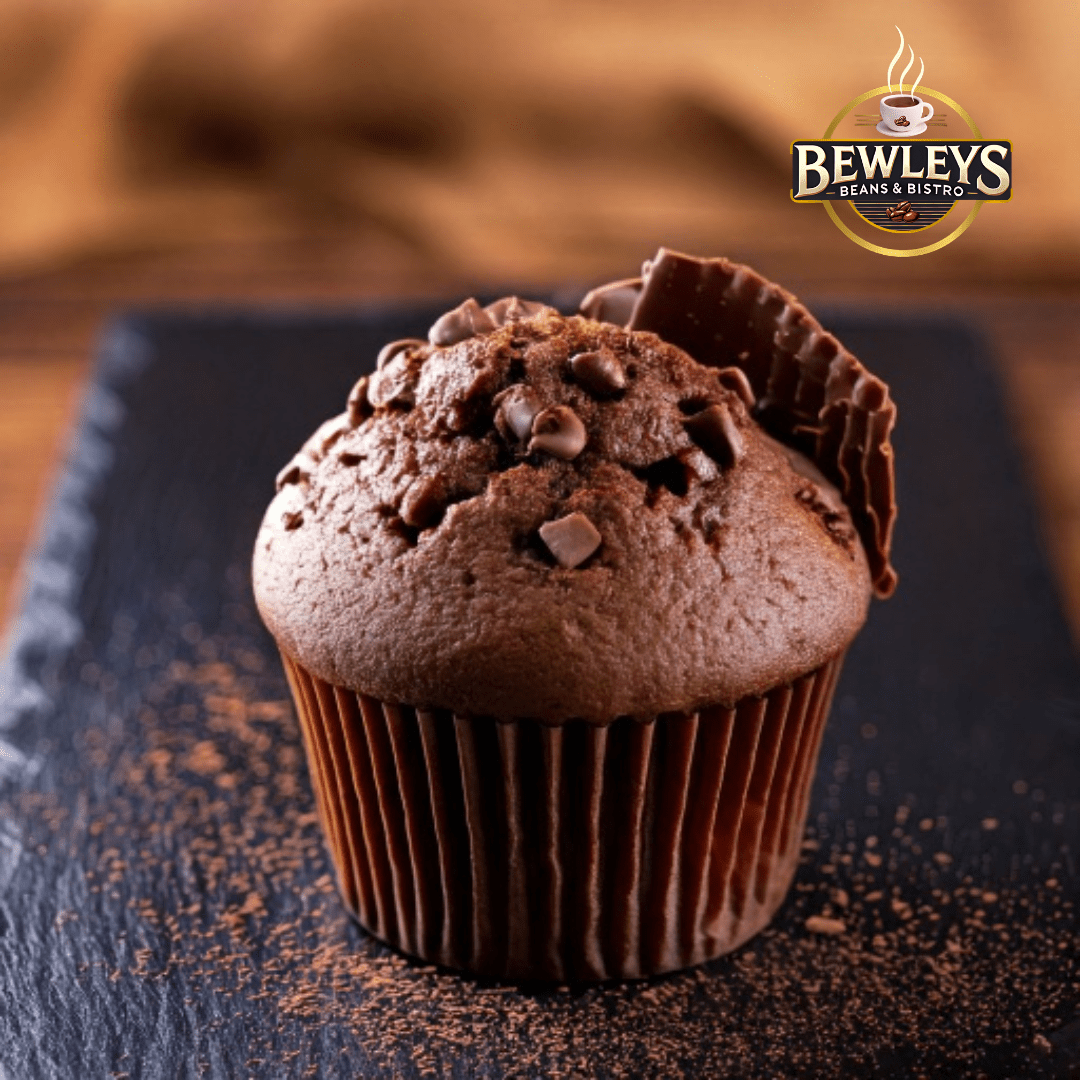A soft, moist chocolate muffin with a rich cocoa flavor, perfect for any chocolate lover.